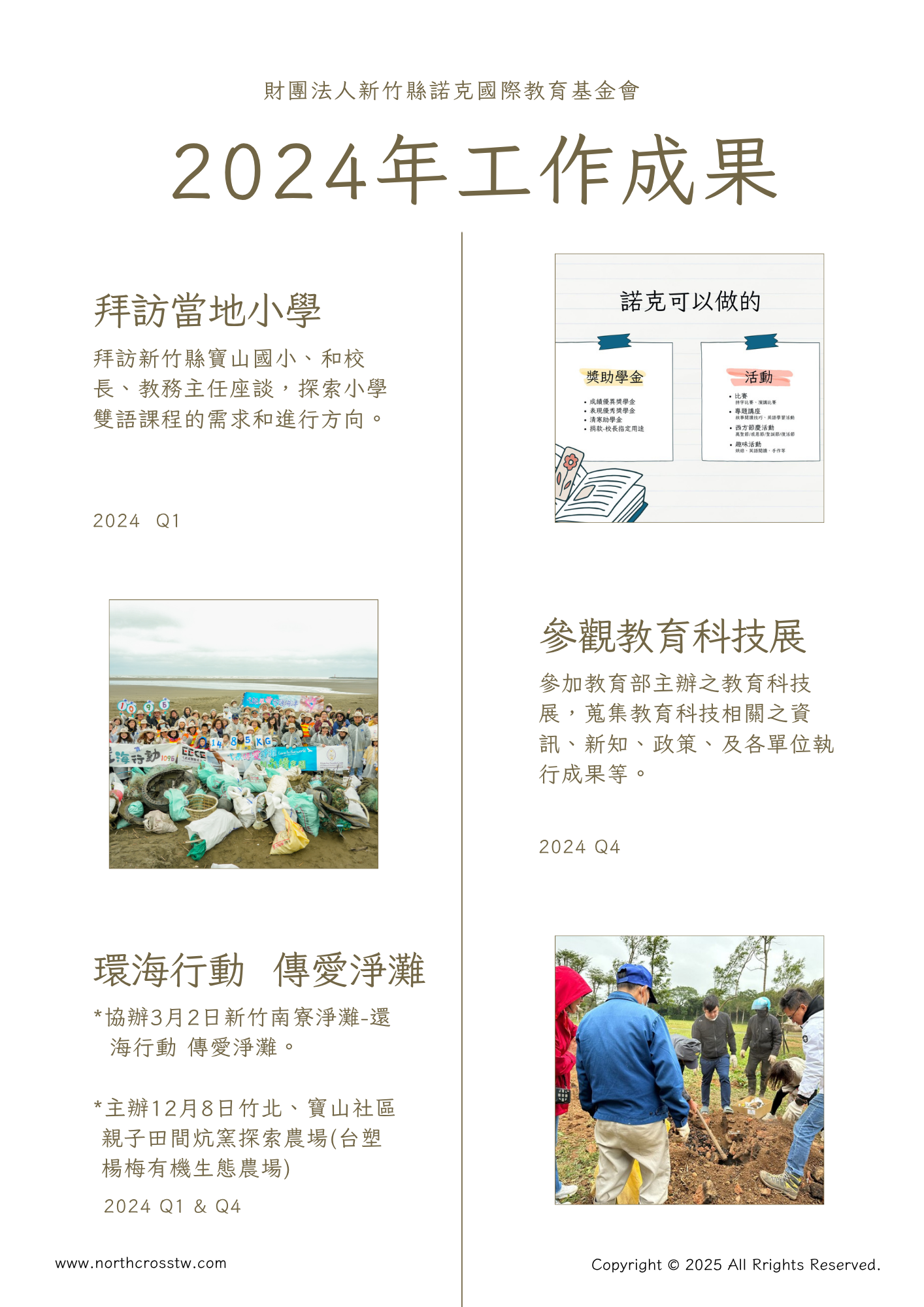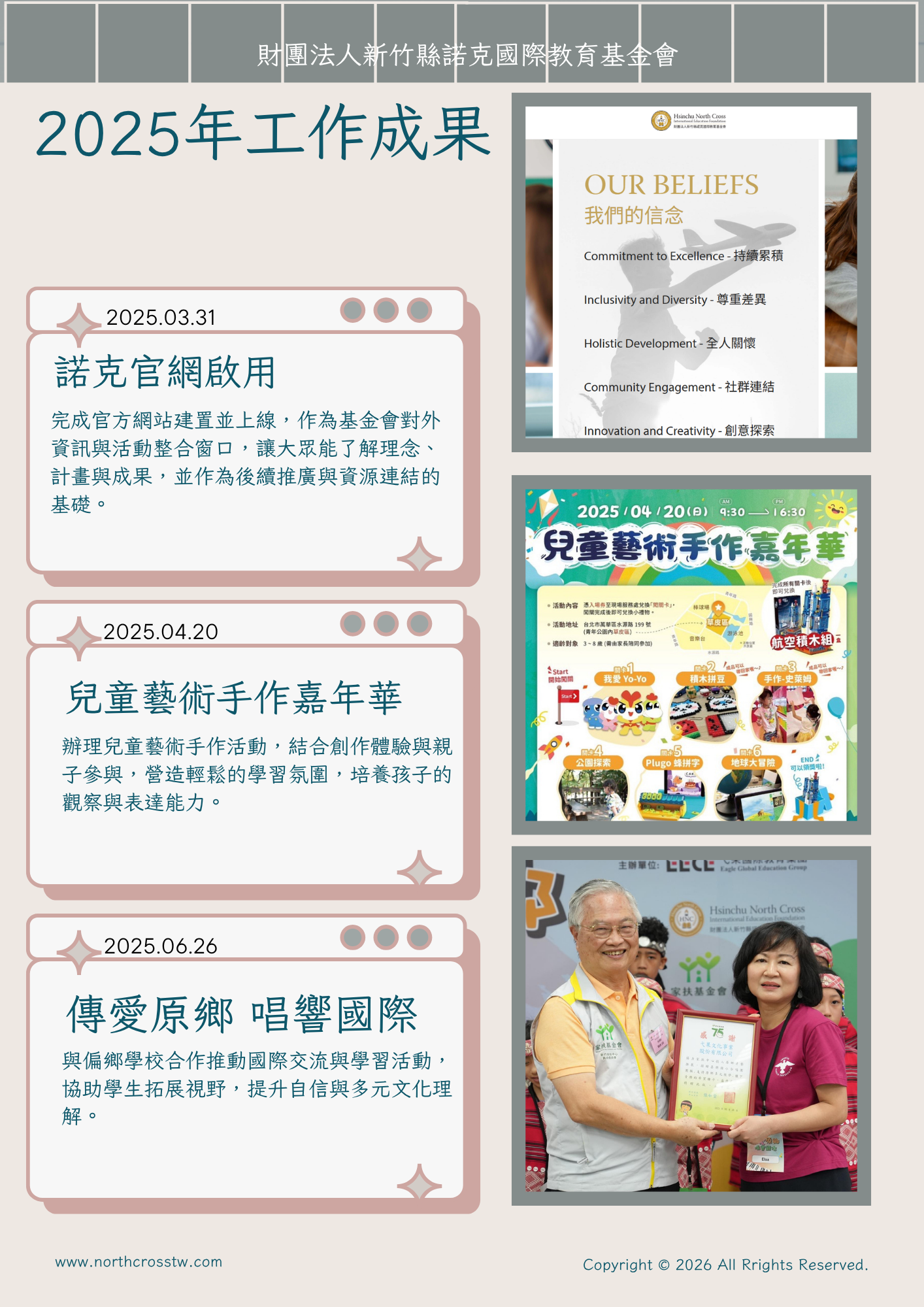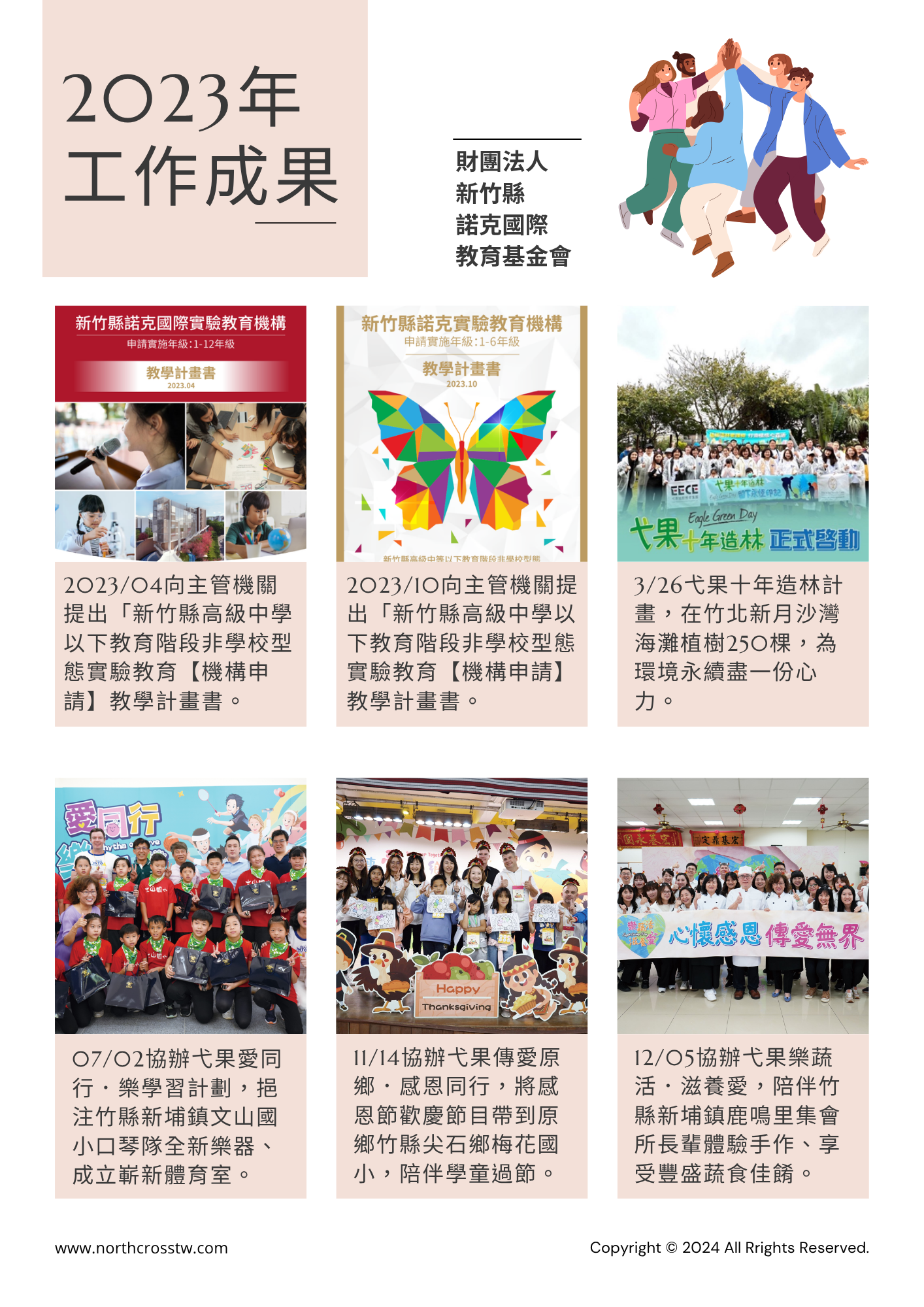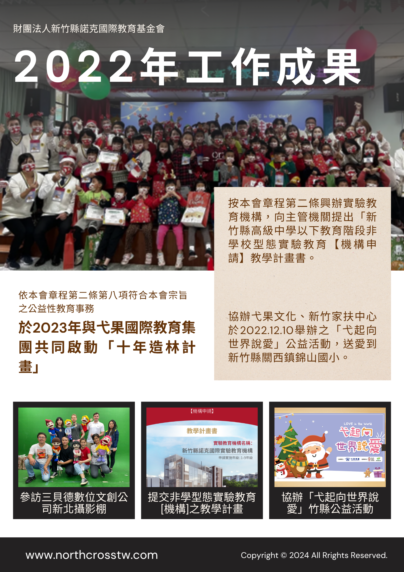 財團法人新竹縣諾克國際教育基金會於2022年7月27日成立,並於同年8月1日完成財團法人登記,為依法設立之非營利組織,持續投入教育公益,並依法接受主管機關監督運作。